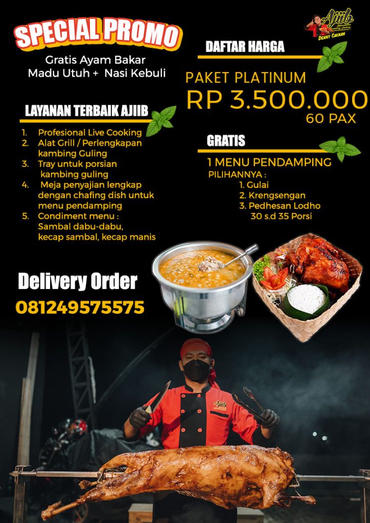 Tim berpengalaman dan profesional dari proses pemesanan hingga penyajian kambing guling Ajiib untuk memeriahkan acara Anda.