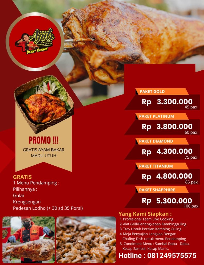 Sudah terbukti, sajian Kambing Guling Ajiib menjadi menu favorit yang dinanti terutama saat acara pesta pernikahan. Bukan hanya menikmati sajian kambing guling yang di-grill langsung, para tamu di acara Anda juga dapat melihat langsung proses memasak hingga penyajian kambing Guling Ajiib.